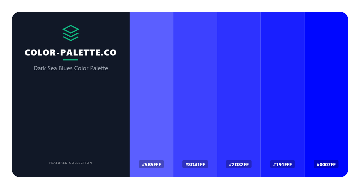 #0007FFrgb(0, 7, 255)hsl(238, 100%, 50%)Exploring and Designing with the Dark Sea Blues Palette