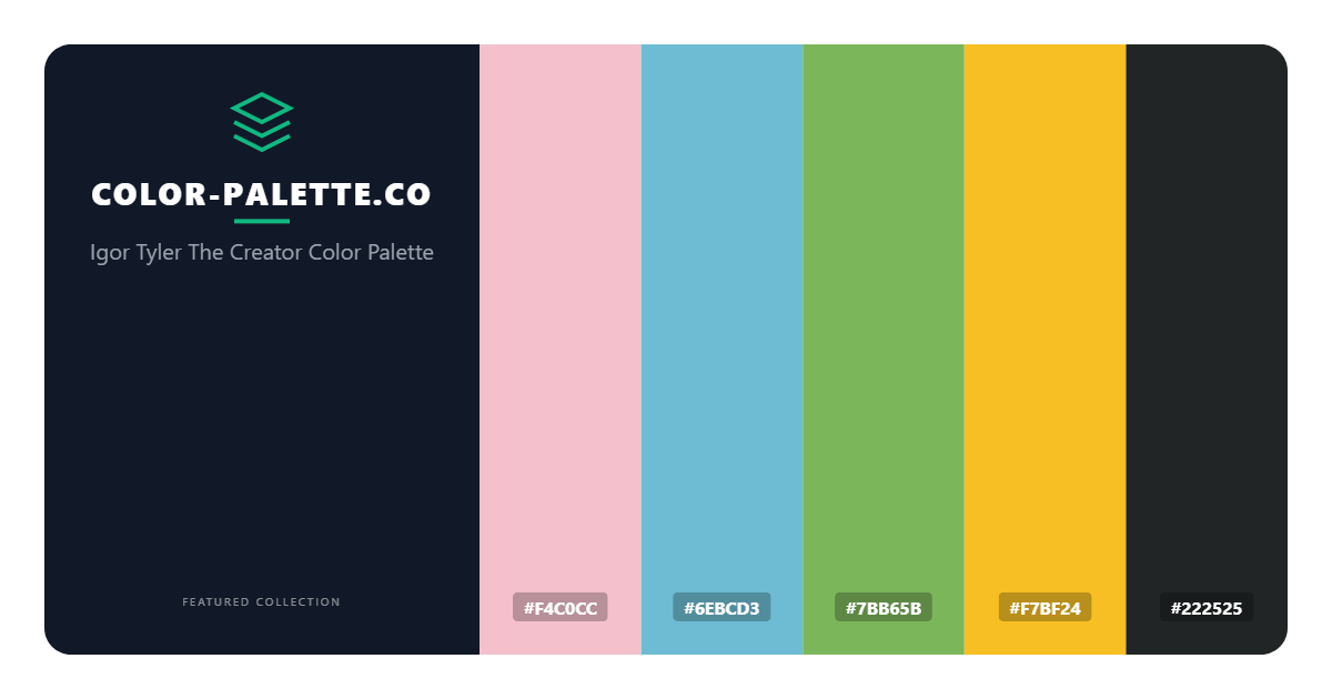 In terms of practical applications, the Igor Tyler The Creator palette is incredibly versatile, lending itself to a wide range of design contexts, from websites and apps to branding and marketing materials. Its modern and bold aesthetic makes it an excellent choice for forward-thinking companies and startups seeking to establish a strong and memorable visual identity. The palette’s balanced and harmonious quality also makes it well-suited for use in digital products, where a clear and intuitive visual hierarchy is essential for guiding the user experience. Whether used in its entirety or as a starting point for further exploration and refinement, this palette offers a wealth of creative possibilities for designers and developers seeking to craft engaging and effective visual experiences.