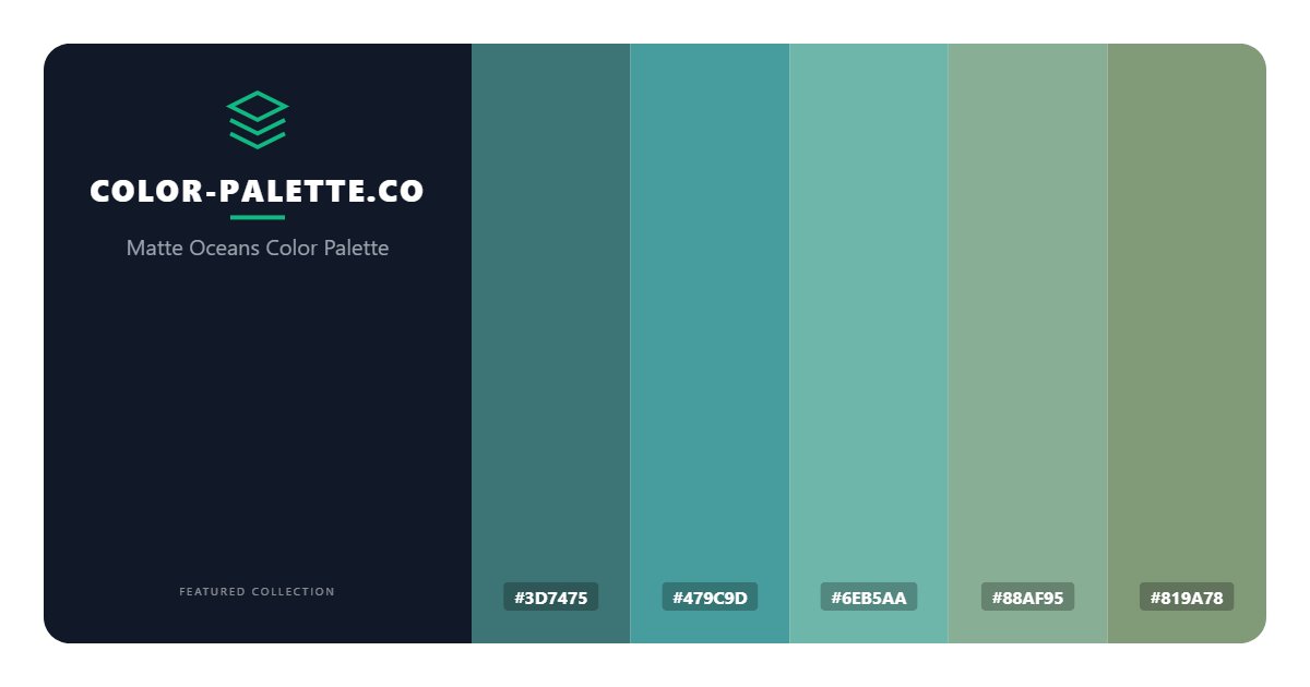 In terms of practical applications, the Matte Oceans palette is versatile and can be used in a variety of contexts, including website design, mobile apps, branding, and marketing materials. The palette’s calming and soothing quality makes it an excellent choice for designs that require a sense of serenity and tranquility, such as wellness, health, and lifestyle brands. The palette’s muted tones also make it an excellent choice for designs that require a sense of subtlety and understatement, such as corporate websites, financial institutions, and educational platforms.